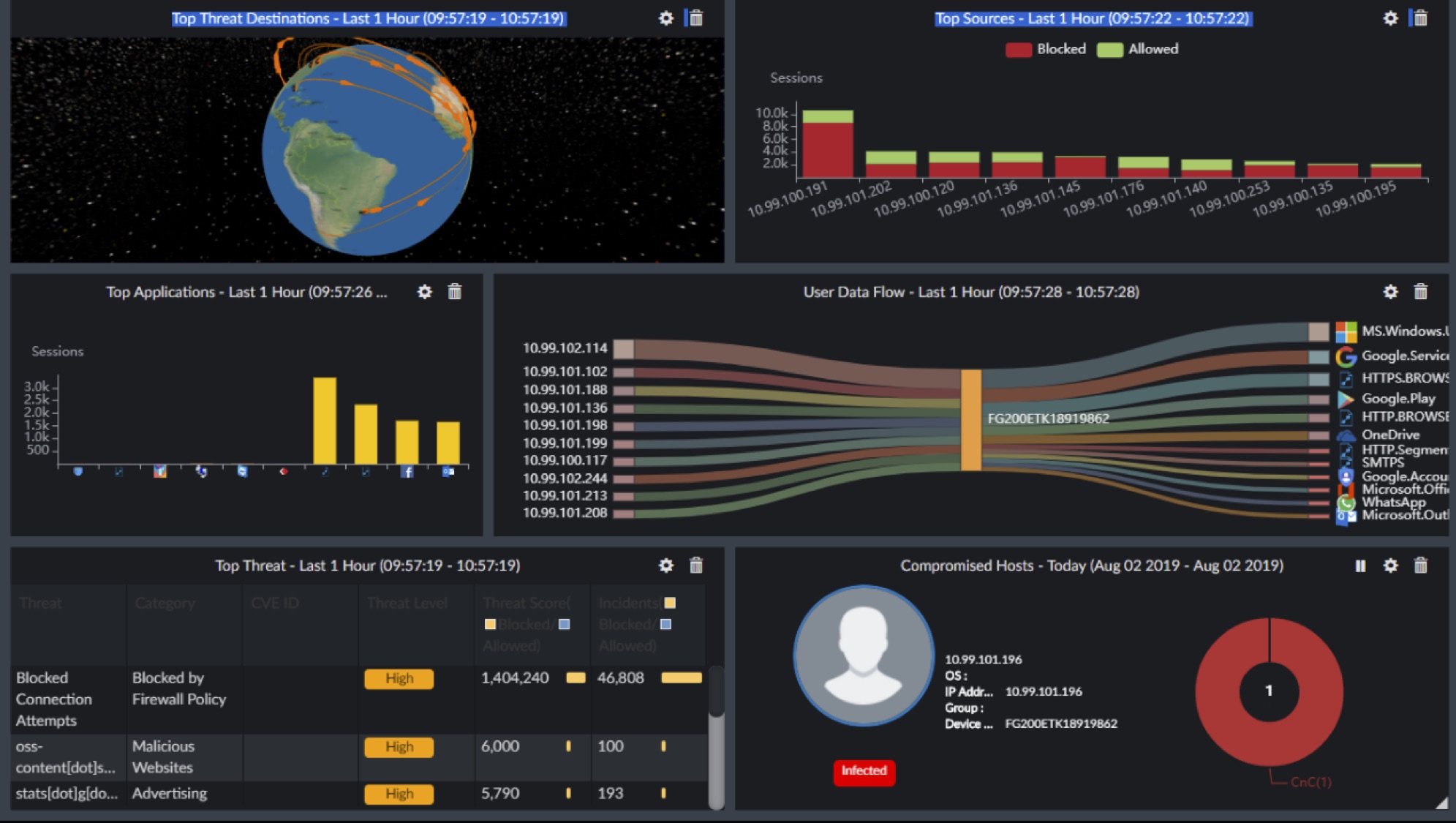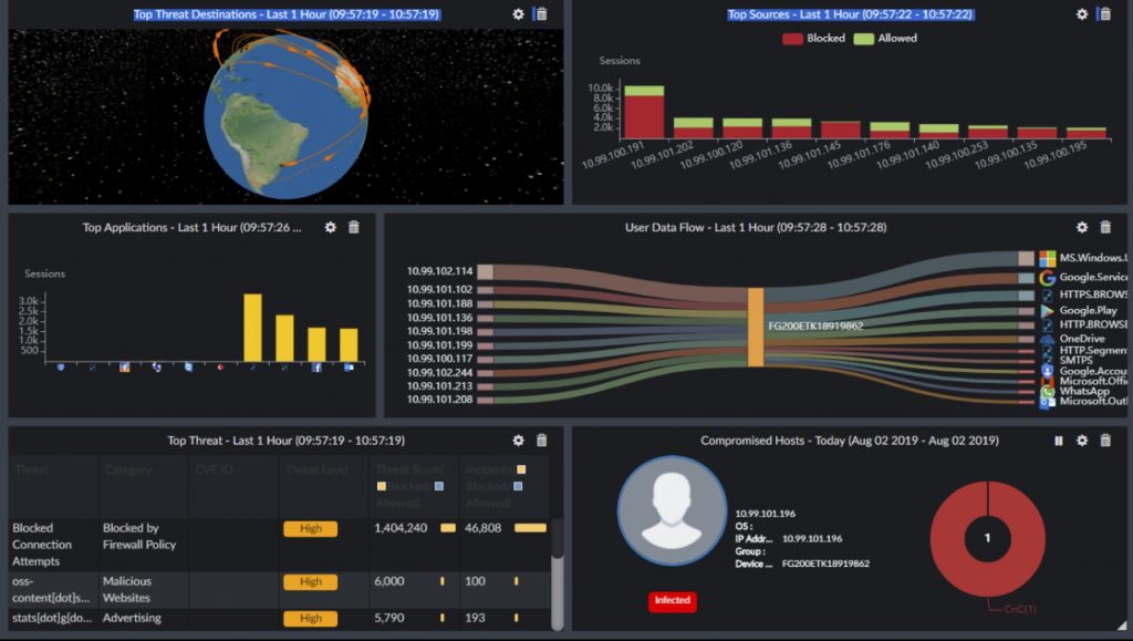 - Network security and optimization based on the usage of resources and applications (firewall, QoS, content filter, user management, among others.)